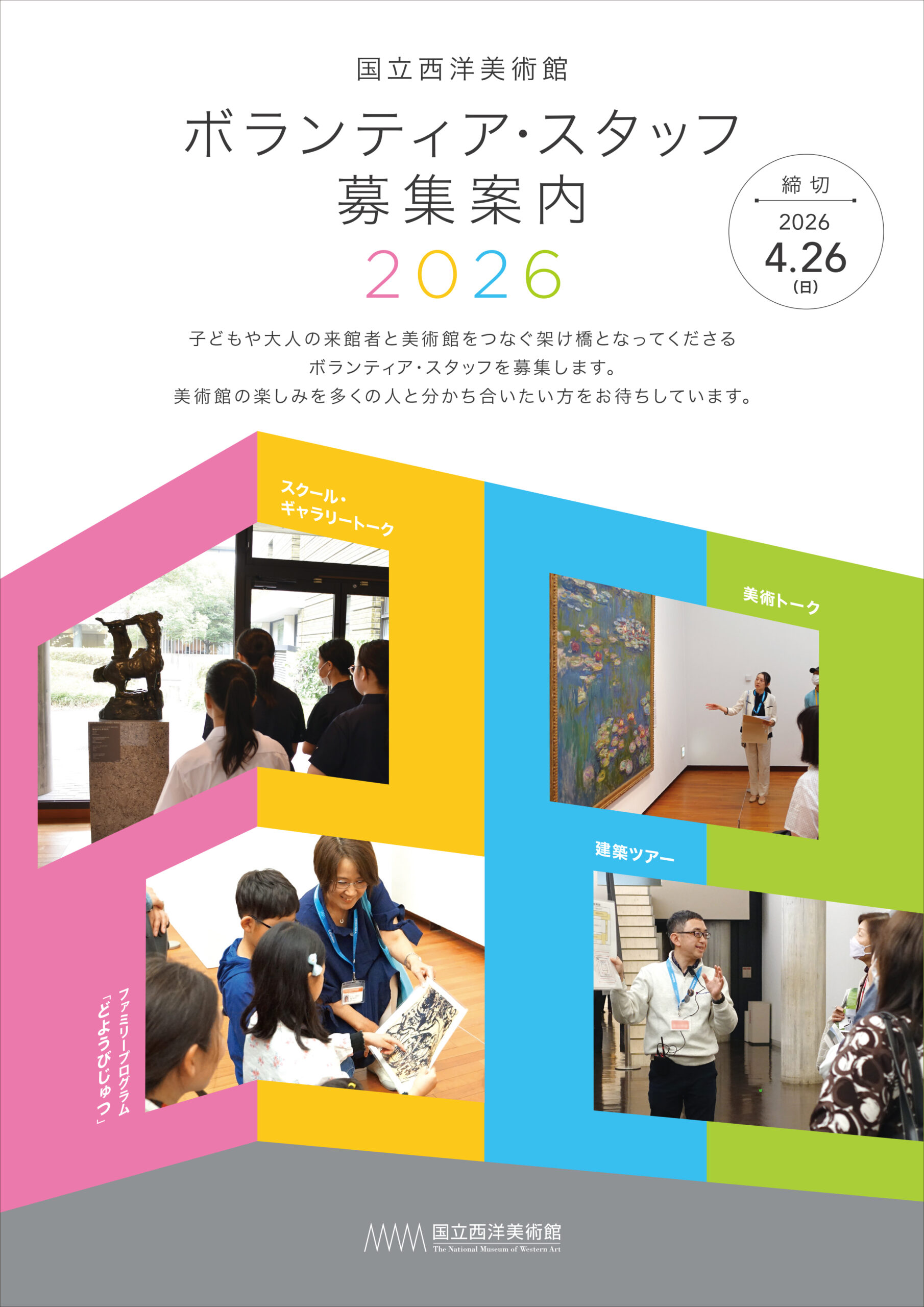 国立西洋美術館では、ボランティア・スタッフの応募を受け付けています(令和8年4月26日(日)締切)。詳しくは下記ページをご覧ください。
